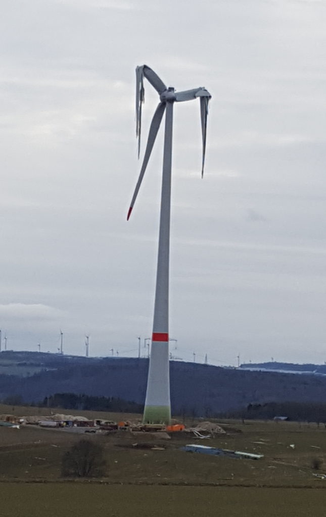 Borchen-Etteln. Am Freitag ist in den späten Abendstunden im Windpark Sintfeld bei Etteln eine Enercon Windenergieanlage mit einem lauten Knall