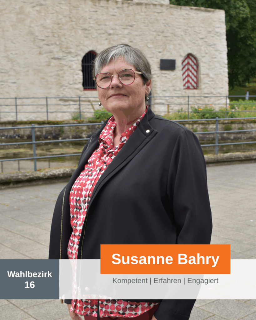 Ich bin vor 70 Jahren in Bad Lippspringe geboren, lebe hier mit meinem Mann, bin Mutter von drei Kindern und inzwischen auch stolze Großmutter von vier Enkelkindern. Unsere Stadt liegt mir am Herzen – deshalb engagiere ich mich.